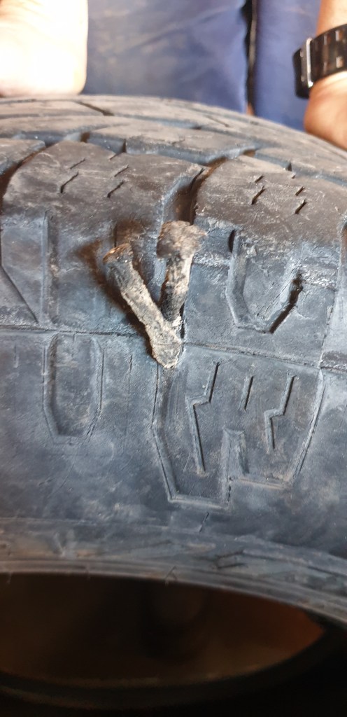 SAME BLOODY TYRE I’D JUST CHANGED!