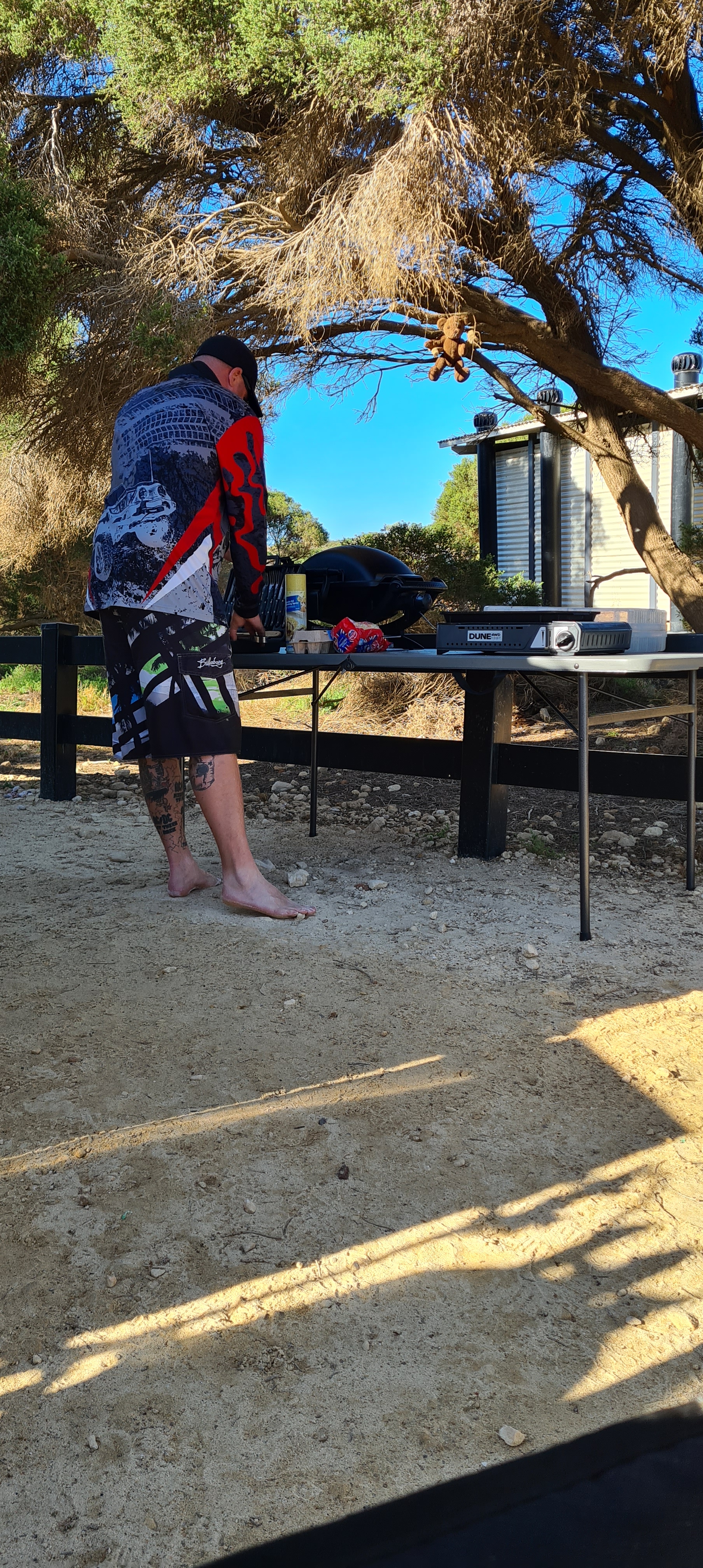 Shaun cooked up a feast at the BBQ… Steak.. Snags… Prawns.. Onion… Was beautiful and always tastes better when someone else cooks… And Cliff even did the dishes…