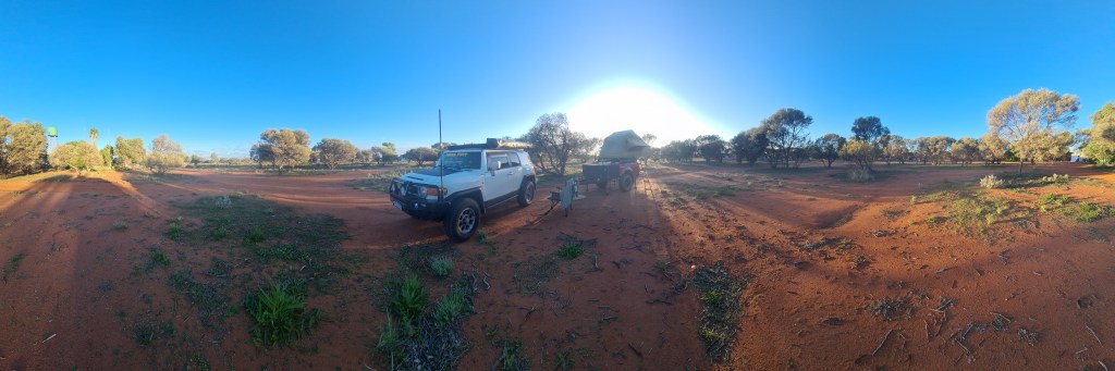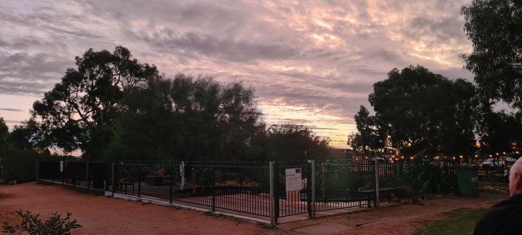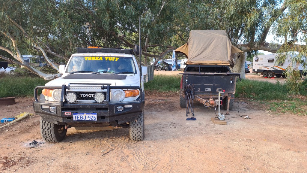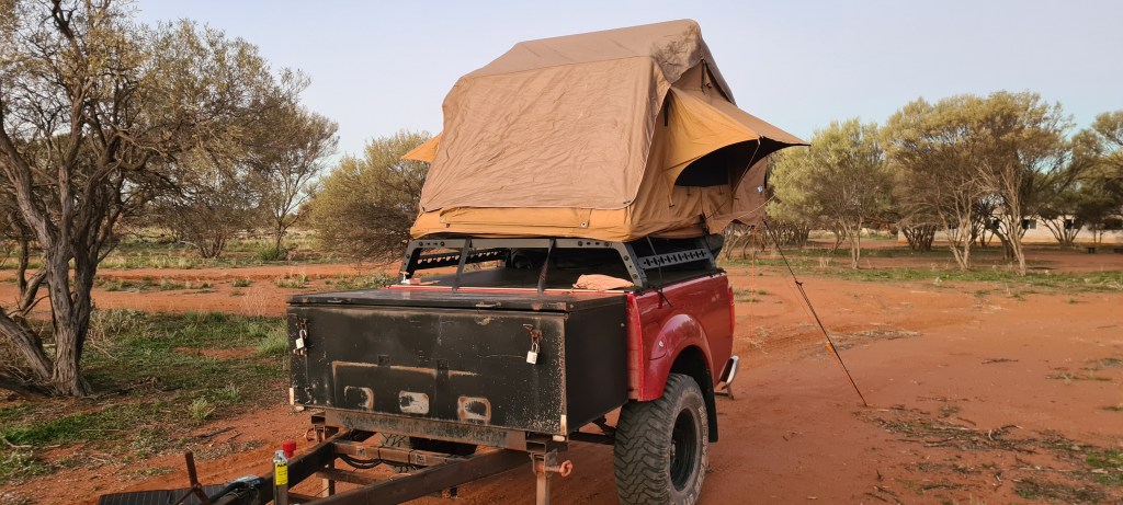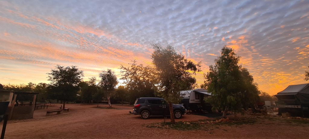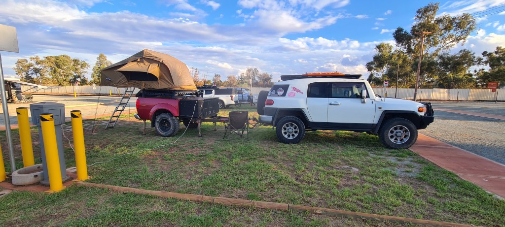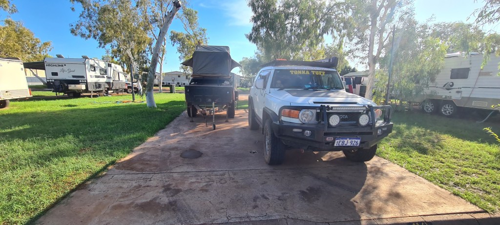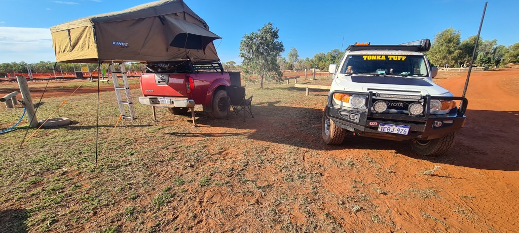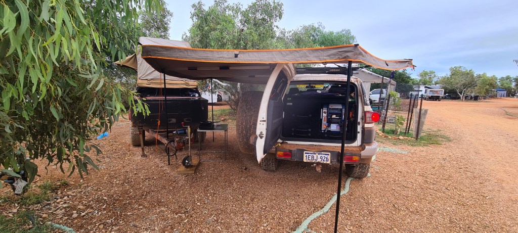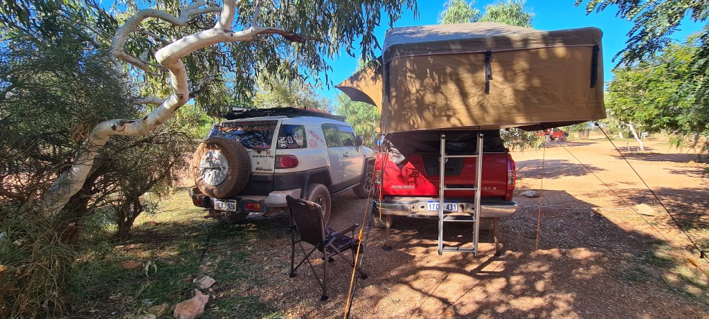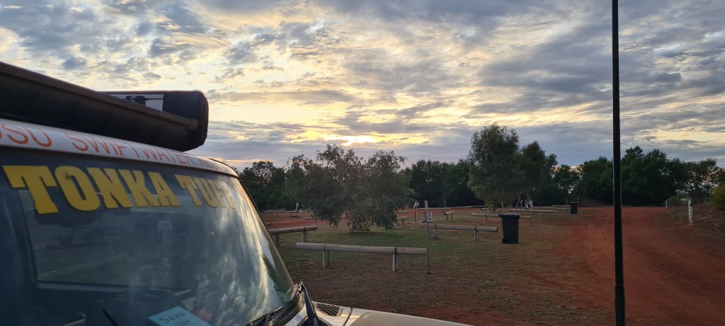 Once I had arrived into Newman I knew where I was staying, Yurlu, but when I drove in, it was very clear there was noone there to check in, so I called the number, but it went to the local council office and they advised it was online bookings only. So about 15 mins after arriving I paid my $45, got my entry code and was rolling through the boomgate. I had a powered grass site, and pretty much drove onto the site and stayed hitched. As it was a later arrival in the arvo, it wasn’t worth unhooking. I set up first, then hit the showers and dinner. Was easy to set up as the ground was nice and soft, perfect for banging in my pegs! 🙂