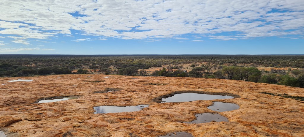 So I took my photo of the map from Rob, chatted to the other campers a bit to work out we may be at the same spot next as they were leaving that morning and if I chose to go and found it, I would have to let them know. Ladies can follow maps right!!?? Well this one bloody can! The map was fantastic, the distances were pretty spot on and the landmarks were where he marked them. It was a great drive, and where was I headed I hear you ask, well to Darn Rock of course! ha ha It was approx a 35k trip out and 70ks round trip. Went through some cool countryside, saw 3 windmills, a couple emus, lots of red dirt and trees and finally made it out to Darn Rock. I parked up next to the ‘You Darn Well Made It’ sign and went for a walk. Very cool rock, managed to find a love heart shape when speaking to Michael, and an outline looking like Australia, put my rock in the pile, tried to take some timed selfies and looked around at the breath-taking views! The photos won’t do it justice, you could see for miles! It was a great outing, and one I am glad I made and found the map super easy!