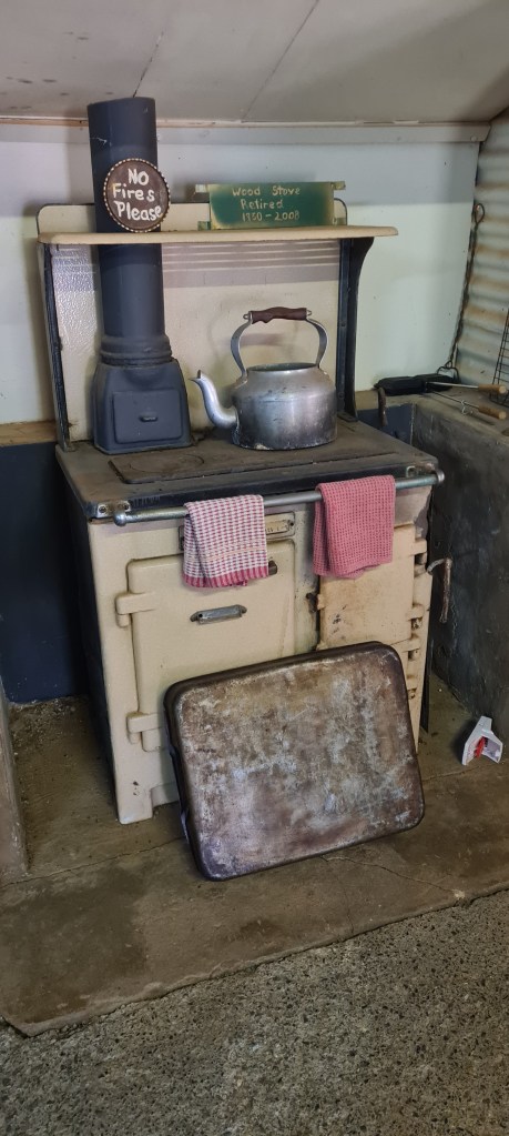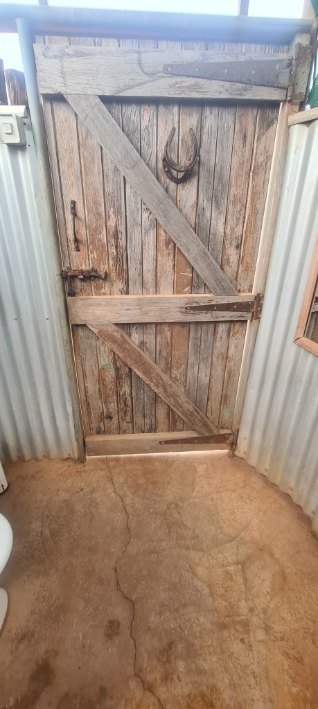 Picked up the map and paid our money and chose a station we could both be on and headed off. I took the lead and held the map which was fun! So there was 2 parts to this station experience, a distance away section where you saw the old shearers quarters and shearing shed and holding pens. The shearers quarters were amazing to still be standing, the whole thing was on the most amazing lean, but the shearers shed was the most amazing. It stopped being used in 2006 when the station moved from sheep to cattle and considering its age, was in incredible shape. We didn’t venture too far into the shed as we weren’t sure of the stability of the wooden sleepers anymore. There appeared to still be wool in there, it was really cool!