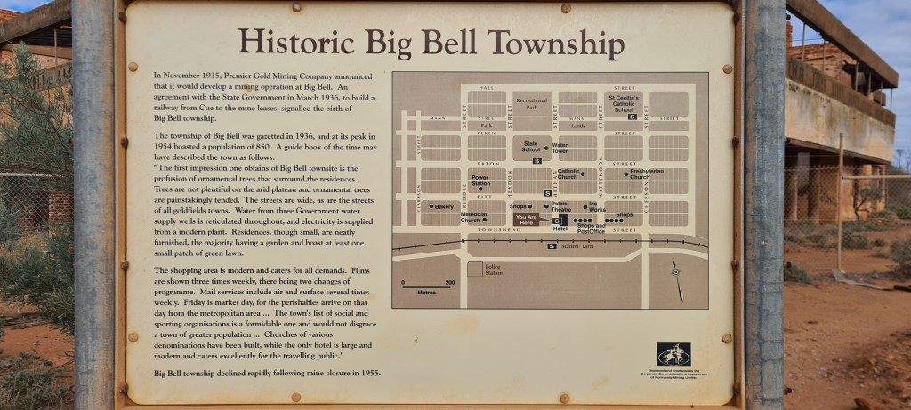 On the second morning I decided to go and explore the ruins of a town called Big Bell. A Mining town which pretty much closed down in 1955 when the mine closed. In its prime it was a booming mining town established in 1936. It included schools, churches, a hotel, bakery and many other shops. It also included an open air Theatre which sadly burnt down only a year after it opened, it was rebuilt but not to the original standard.