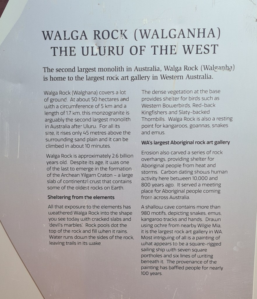 I took a little detour on the way back to check out Walga rock, just further South west of Cue – much bigger than Darn rock but you can’t walk around it. Found myself a nice little monitor lizard along the way too – figured it was his road, he can make a crosswalk wherever he wants. (excuse the bugs on the window)
