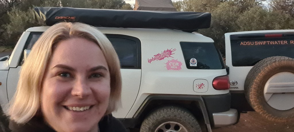 I met my next neighbour that afternoon after the pools – Rhiannon with the sexy high top troopy! We realised later that we actually had friends in common back in Perth which was awesome! We clicked right away and is definitely the first solo woman I’ve seen travelling in such a long time. We shared the campfire and I’m sure I spilled my life’s story to her, but it was great! We decided in the morning we were gonna go pay our $10 each and grab the map to the the station self drive.