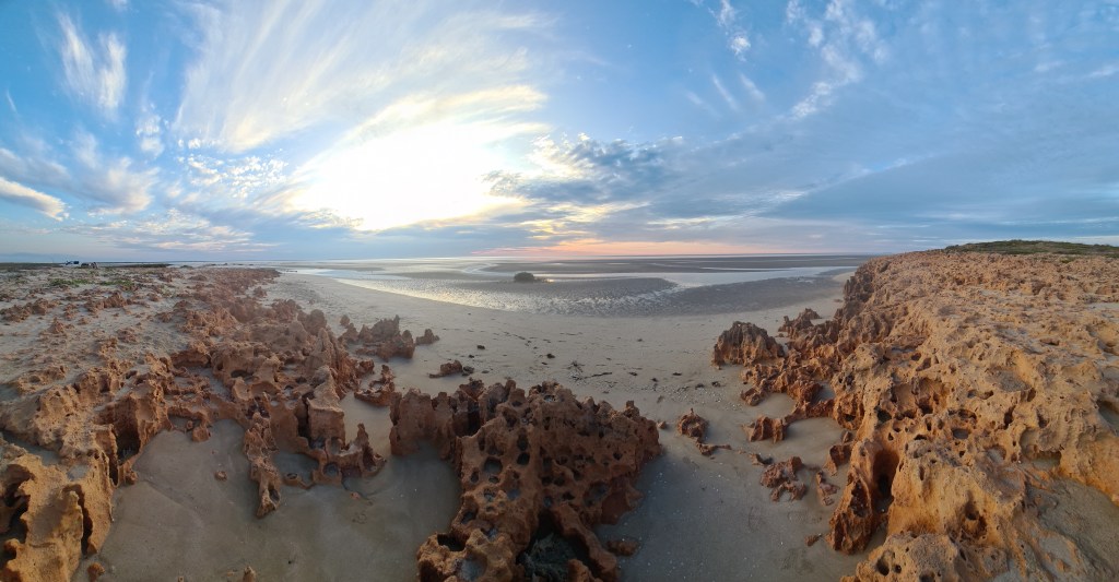 The next day I decided to do a bit of exploring, managed to get a map of the caravan park and surrounds and took a drive to the river mouth to check out all the hype! The tide was super low but it was pretty amazing to see how high it could actually come up to! there were these really wiked little red crabs with only one MASSIVE red claw, which I think with my little googling skills is called a ‘fiddler crab’ where the males have one enlarged claw. As soon as you got a little close, they disappeared down tiny holes. There are 2 gates to go through to get to the river mouth, the first is at the caravan park and then the next is to go to the start of the river mouth, both must be left as you found, which is closed.