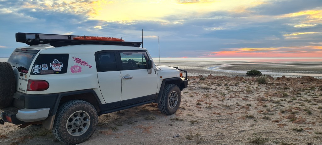 My final day at the beautiful Pardoo station was a hot one, and I spent alot of it at the pool 🙂 after I was sufficiently pruney I jumped out and chilled by the car under the shade of the tent. Before I knew it, it was just before 5pm and the girls came by to pick me up. Ohhh I forgot to tell you all, this trip I remembered to buy some icy poles and put them in the freezer for the trip. They were fantastic way to take the edge off the warmer days, and something a little sweet.