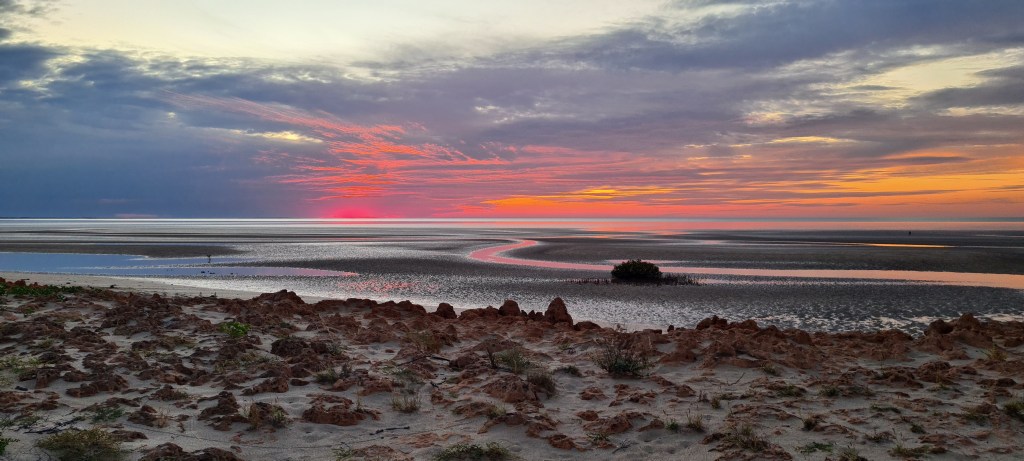 The girls swung past at about 5pm for what was going to be my last sunset at Pardoo, but I had just extended my stay as the next day was supposed to be raining HARD in Karratha where I was going to be the next day so I extended. The sunset once again didn’t disappoint, red and pink, purple and orange and the crazy crabs came out again and they were awesome! I was considering how I could possibly take one home for my nephews.