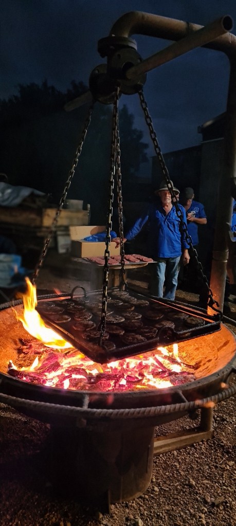 What an awesome night, they called everyone line by line and called up for the burgers, after they were cooked over a camp fire, with a swinging plate? not sure how to describe it, see photos and video below. The staff were fantastic and cooked and prepared apparently 258 burgers that night. They were well worth staying the extra day for. The whole place is amazing! The shower was awesome, outside, water from the tank and all the hardware was various items from the farm, horseshoes etc