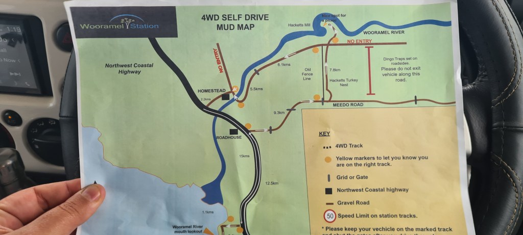 So, I grabbed my last round of scones as I checked out, took the photos of my car at all the property signage and followed my GPS to Wooramel Station, which is just after Carnarvon and was to be the last station I was staying at this trip.