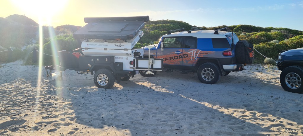 Shortly after, we were joined by the Offroad TV guys and laughed at “what took you so long” haha They had done the ‘bogging’ not for the show or for the channel, I really think they were bogged for real but made it worth while. Had a great chat and a laugh with the guys before they invited us back to their camp for a but of a chill! I hadn’t been further north on this section of beach so that was fun, they were great guys! We got to their camp and they set up, showed us a few of their toys and we chatted about travels and the show and all our cars.