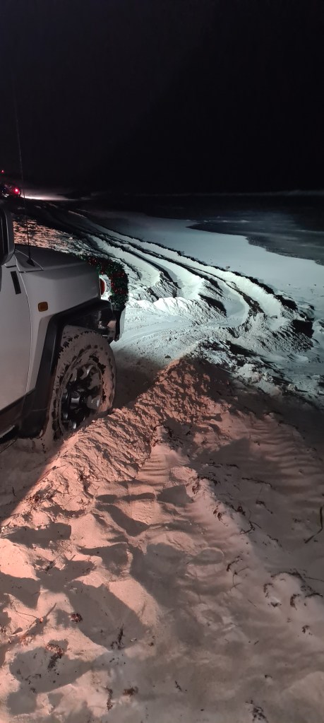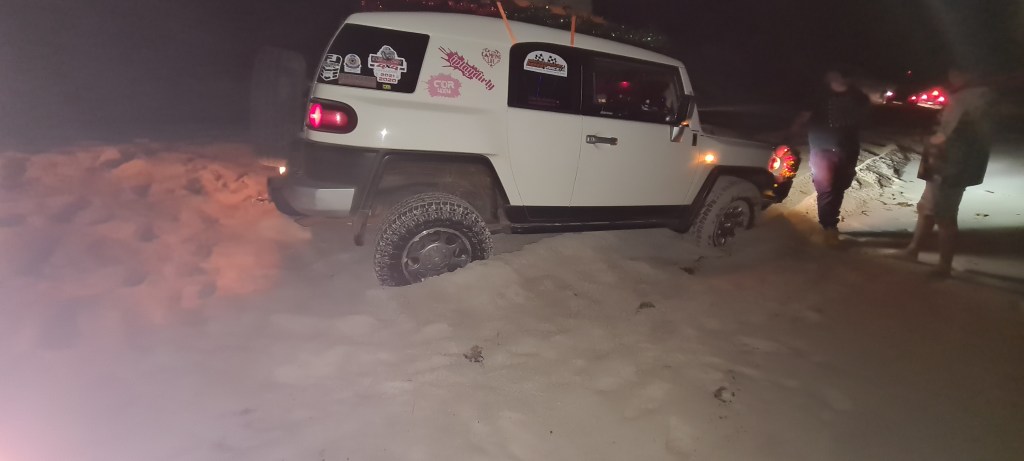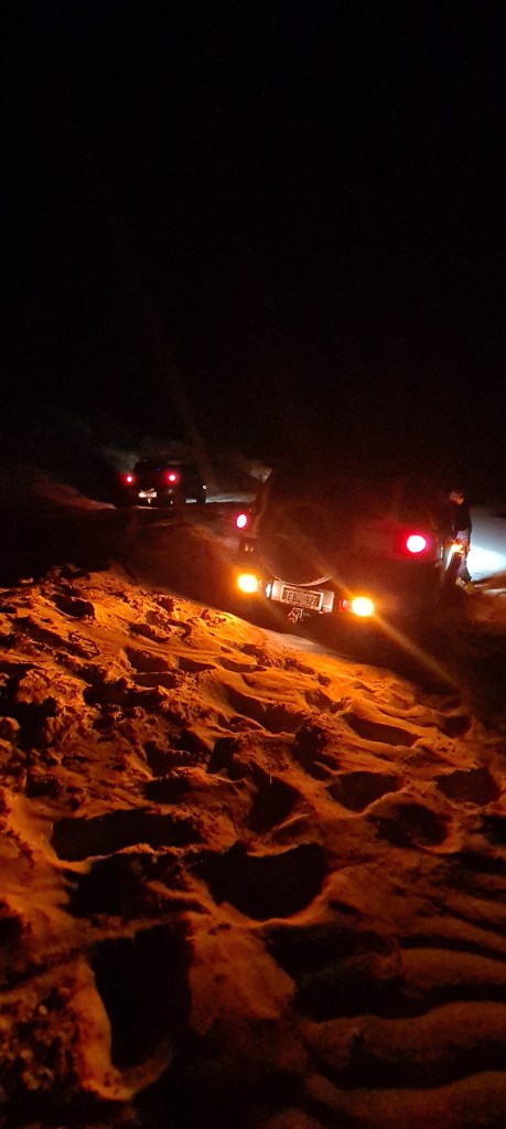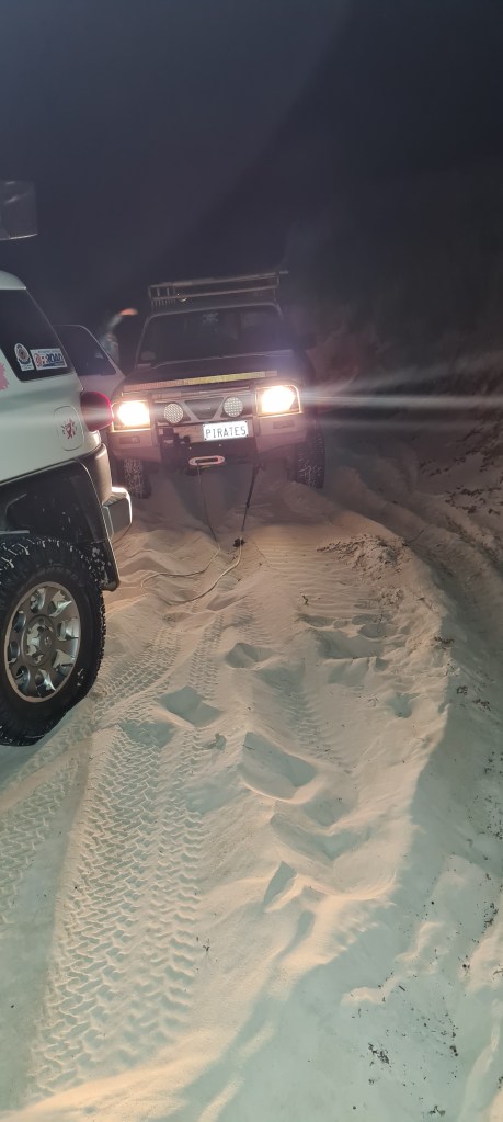 Then it was onto the next one, as the others had moved past me 2 got bogged also, and he managed to get all of us out, Lorraine suffered a little damage but we all got out, without losing our cars to the ocean. by this stage it was a bit after 11pm and we had been ‘recovering’ since about 6.30 when the sunset. We finally arrived back into the north end of the lancelin dunes at about 11.30pm where I texted mum to let her know we made it out and was back on solid ground – I had been texting her during the night, probably not helping that I kept telling her “nope still stuck” for most the night.